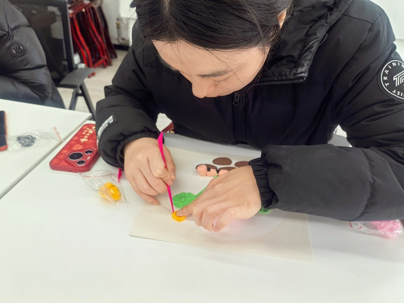 面塑,俗称“捏面人”“面花”“礼馍”,是一门以面粉、糯米粉等为主料,通过揉、捏、搓、压、剪、刻等手法塑造人物、动物等形象的传统民间艺术。看着亲手塑造的面塑作品,女职工感受到传统技艺的独特魅力与创作的纯粹快乐,充分彰显了新时代女性的精湛匠心与动人风采。
