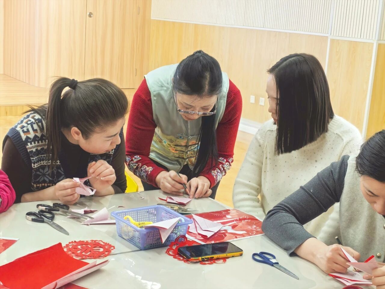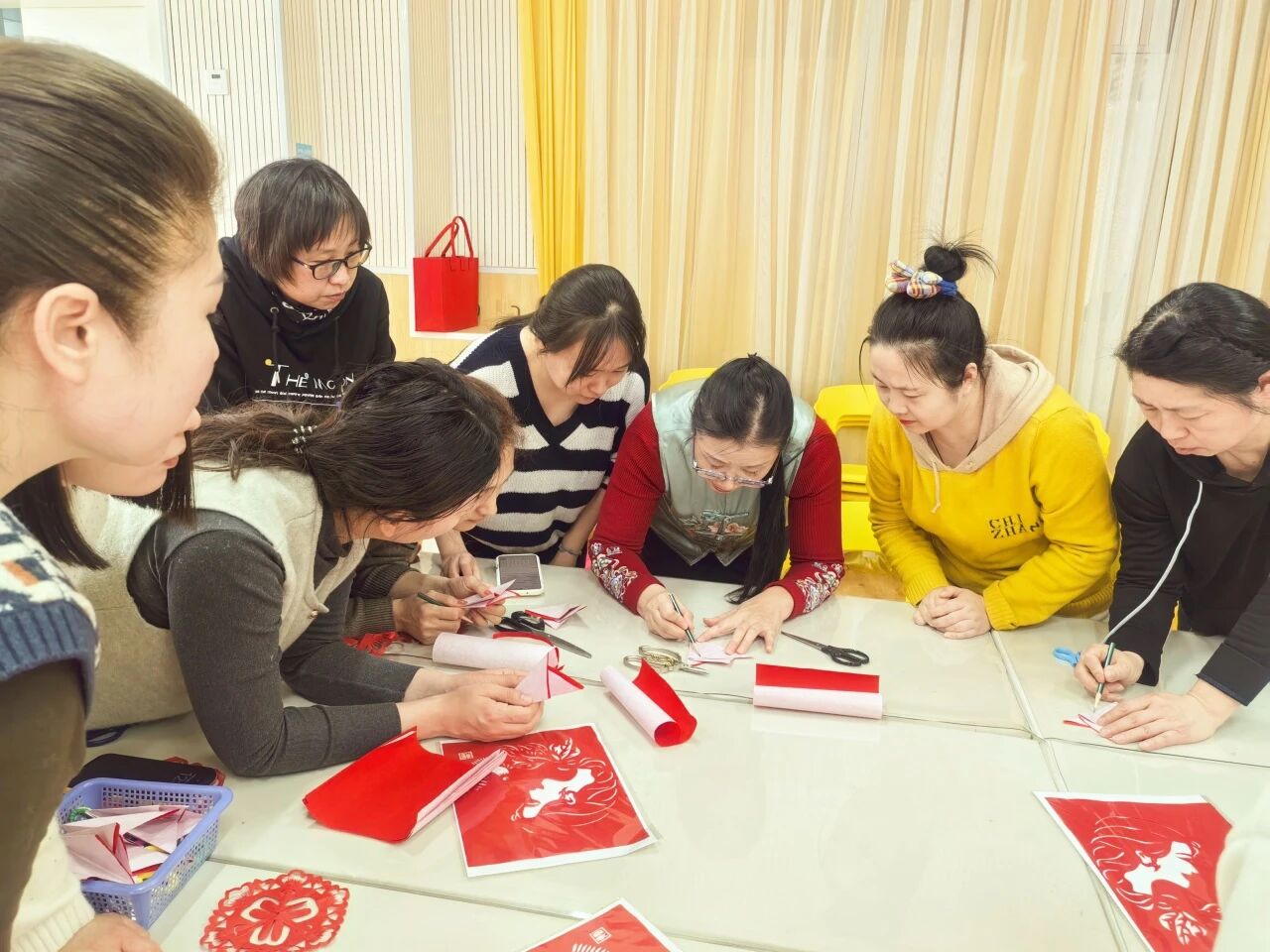 女职工在专业老师指导下创作,在动手实践中感受传统文化魅力,放松身心,增进交流。在指尖的跃动里,在剪刀与纸张的低语中,幼儿园女职工温柔细腻的情感特质得以生动展现。欣赏非遗老师的精美作品,女职工们不仅感受到剪纸技艺的独特魅力,也沉浸在节日的喜庆氛围之中。剪纸既是民间艺术的瑰宝,也是中华文化的重要象征,剪纸作品虽小,却承载着深厚情感。